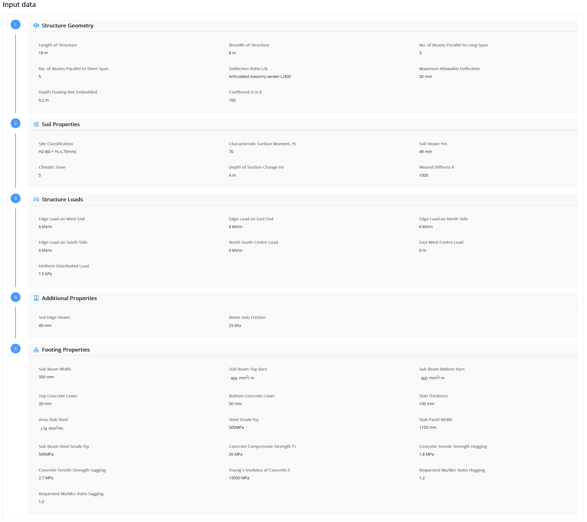 SLOG® also allows the option of the designer specifying the quantity and grade of the sub-beam reinforcement, rather than determining the minimum steel as above. This is advantageous if the designer wishes to obtain a shallower footing but with more steel, and in cases of the grade of the slab steel being different to the grade of sub-beam steel.
