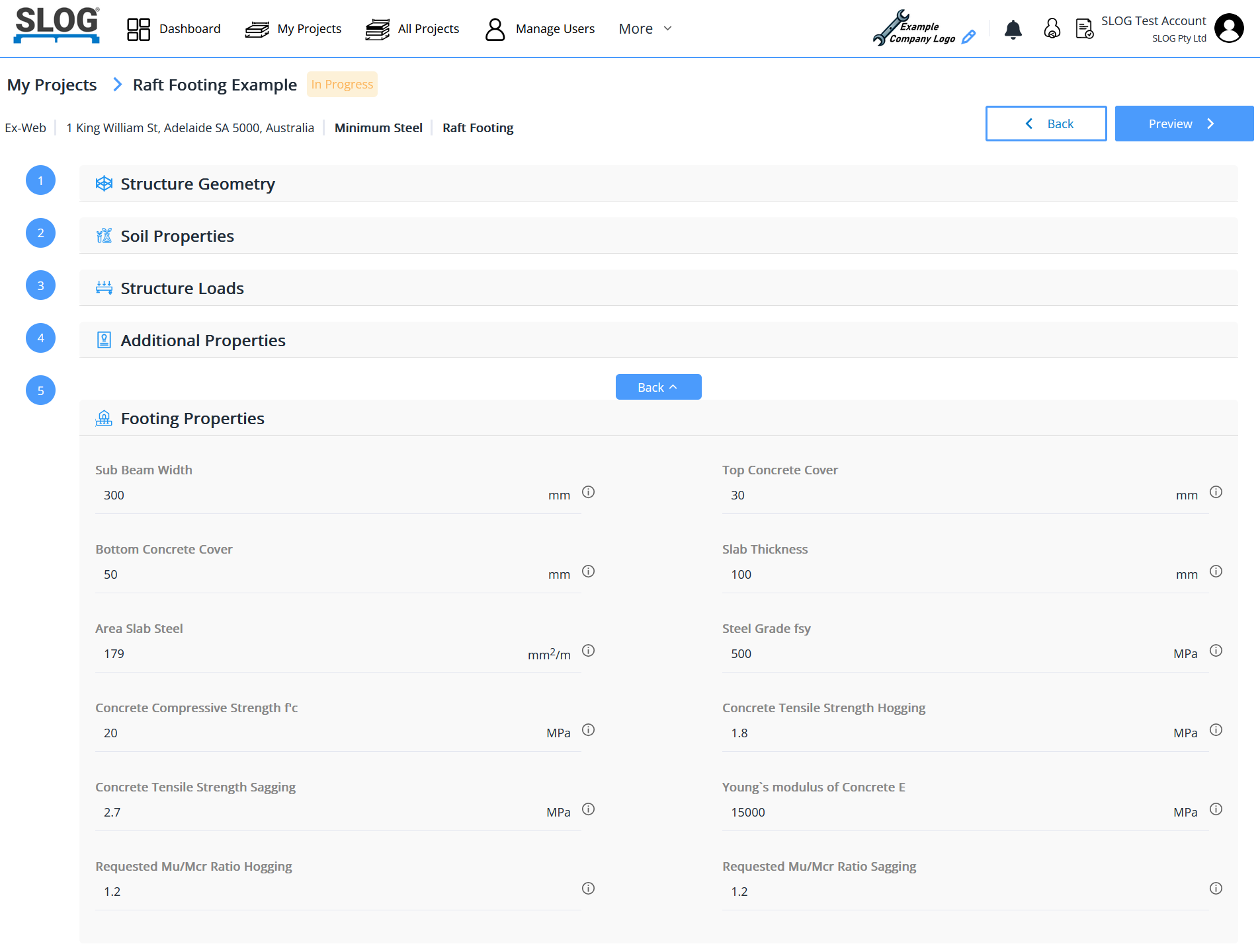 SLOG® also allows the option of the designer specifying the quantity and grade of the sub-beam reinforcement, rather than determining the minimum steel as above. This is advantageous if the designer wishes to obtain a shallower footing but with more steel, and in cases of the grade of the slab steel being different to the grade of sub-beam steel.