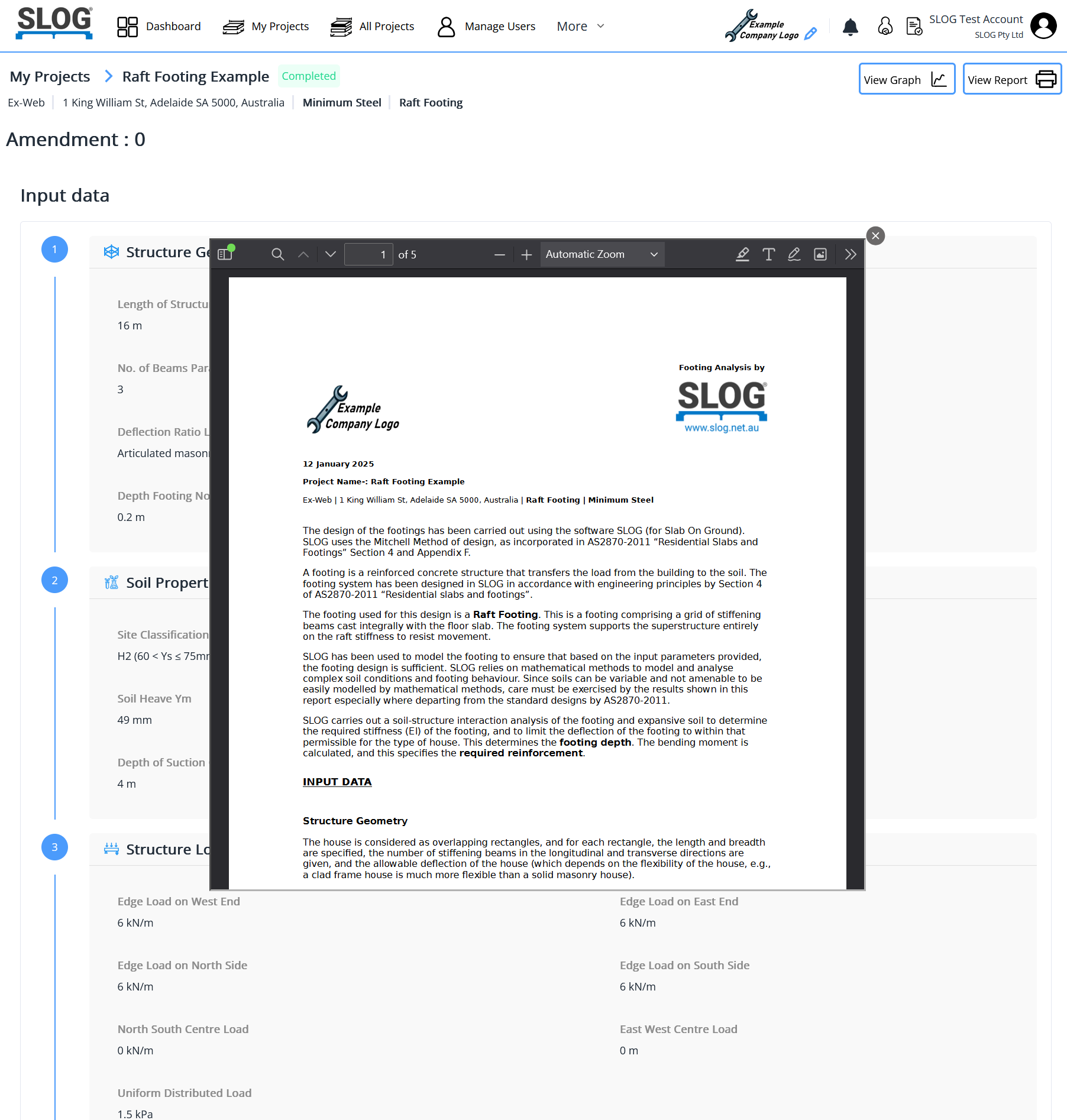 Two buttons appear after calculation has completed, View Graph and View Report. The View Graph button allows inspection of the steps in which SLOG calculated the solution. The report is able to be downloaded via the View Report button.